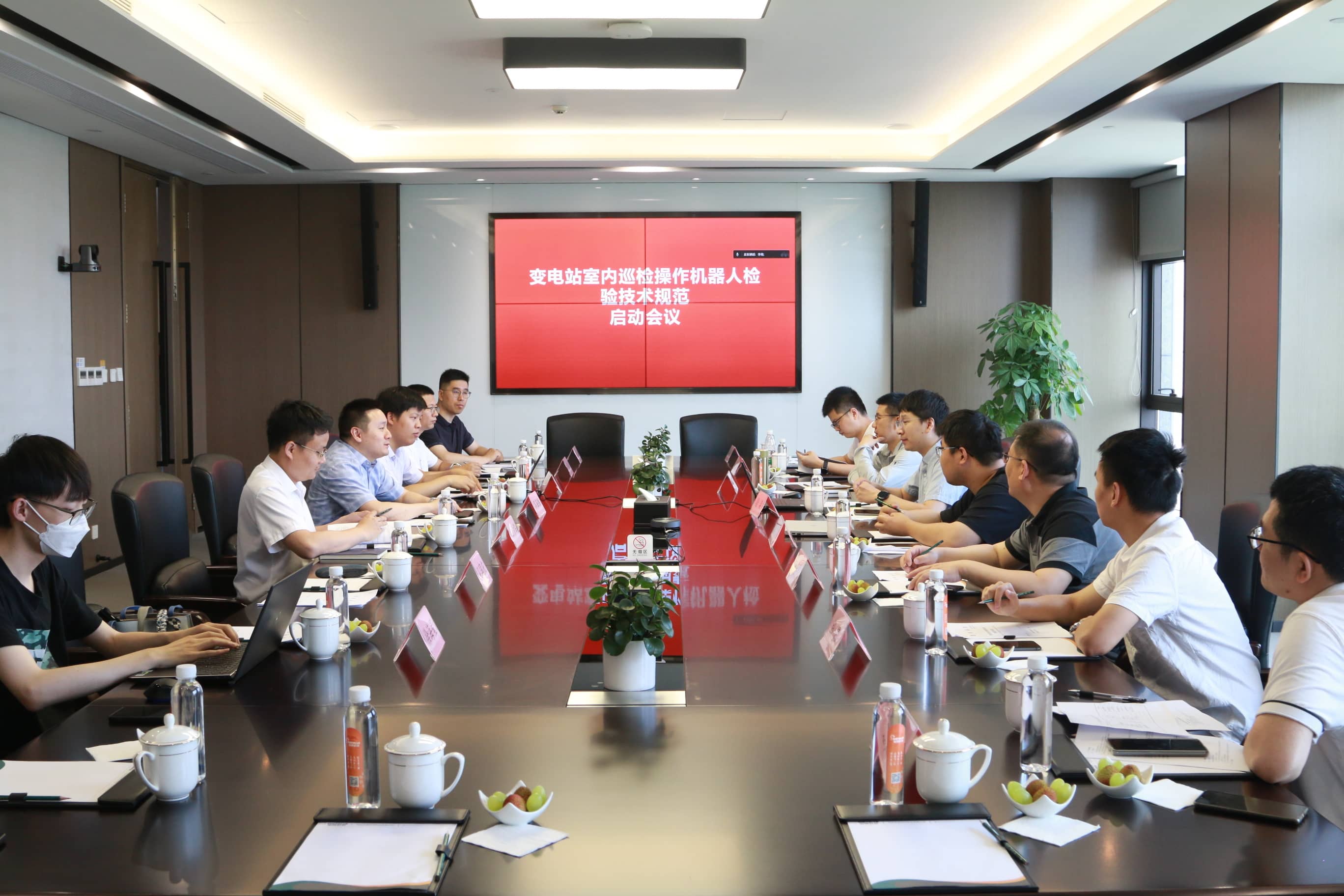 本次會議主要確定了《變電站室內巡檢操作機器人檢驗技術規范》團體標準制定的參編單位,并具體討論了技術規范標準的大綱,任務分工及進度計劃。會議確定了《變電站室內巡檢操作機器人檢驗技術規范》團體標準由包括申昊科技在內的9家單位分工編寫。