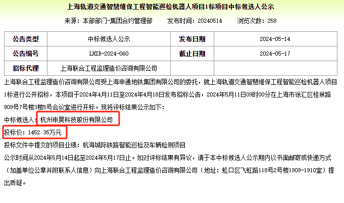 喜訊|申昊科技中標上海申通地鐵軌交機器人項目