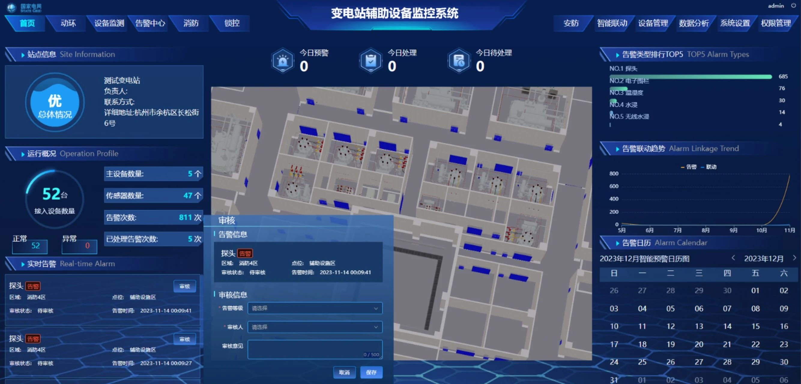 系統(tǒng)將變電站的各項(xiàng)運(yùn)營信息匯聚成一張智能圖譜,包括任務(wù)統(tǒng)計(jì)、狀態(tài)統(tǒng)計(jì)、巡檢統(tǒng)計(jì)和告警列表等信息,構(gòu)筑一個(gè)智慧綜合駕駛艙。