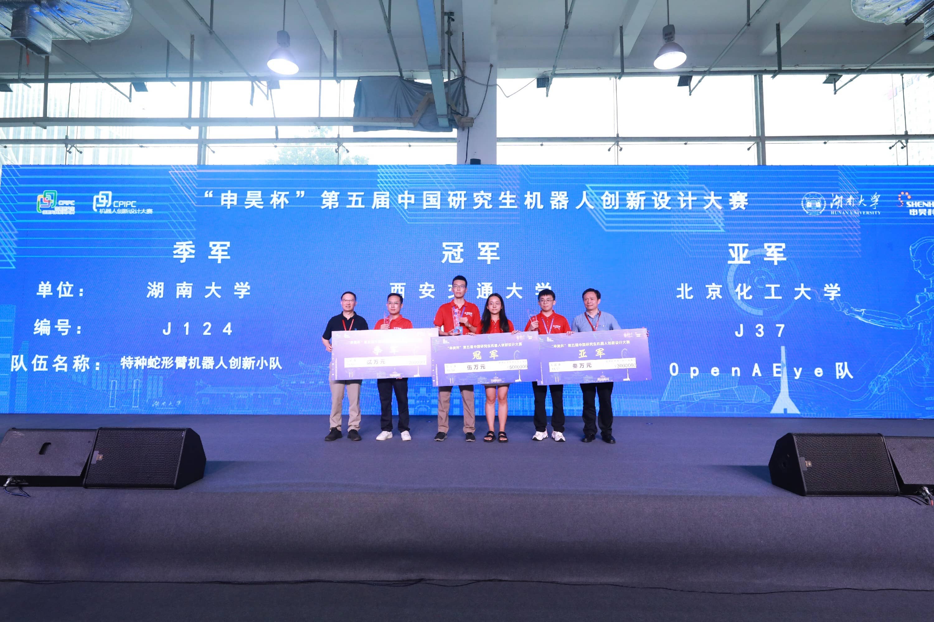 本屆大賽共收到來自近240所高校和科研院的1177支隊伍報名,經初賽評審最終288支隊伍進入決賽。經過兩天激烈的角逐,最終決出冠、亞、季軍各1項,其他一等獎25項,二等獎86項,三等獎170項。其中來自西安交通大學的“穩如泰山隊”脫穎而出,獲得本屆“申昊杯”大賽的冠軍,北京化工大學“OpenAEye隊”榮獲亞軍,湖南大學“特種蛇形臂機器人創新小隊”榮獲季軍。